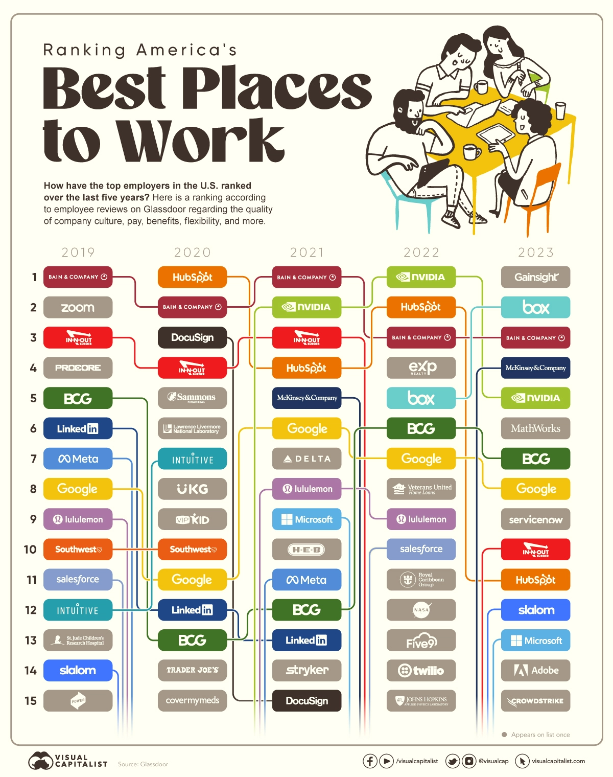 자료 출처: Visual Capitalist, "Ranked: America’s Best Places to Work in 2023"