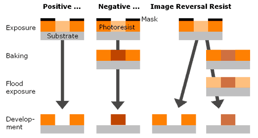 → Positive : 광 받은 부분이 제거, 고해상도