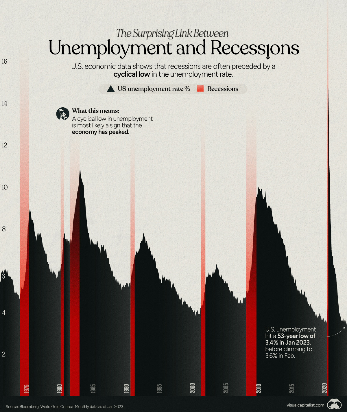 자료 출처: Visual Capitalist, "Visualizing the Link Between Unemployment and Recessions"