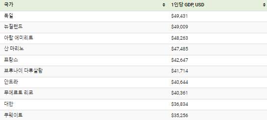 ℹ️ 1인당 GDP는 한 국가의 총 경제 생산량(GDP)을 전체 인구로 나눈 수치입니다.