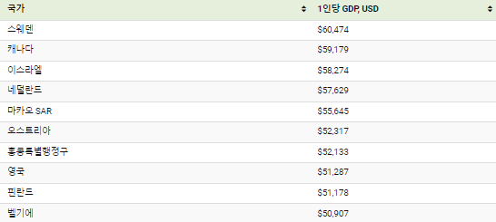 1인당 GDP를 기준으로 한 2023년 가장 부유한 국가의 전체 순위는 다음과 같습니다.