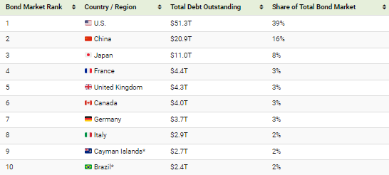 자료 출처: Visual Capitalist, "Ranked: The Largest Bond Markets in the World"