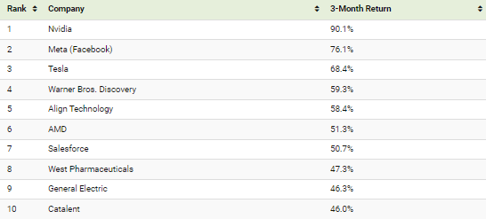 엔비디아 주가는 2023년 1분기 S&P 500 기업 중 가장 큰 폭으로 상승하여 3개월 동안 무려 90%의 수익률을 기록했습니다.