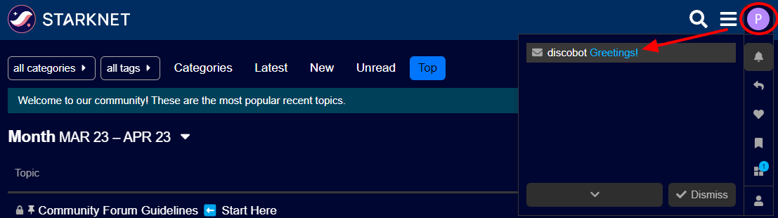 3. 내 Profile 선택 후 discobot Greetings! 클릭