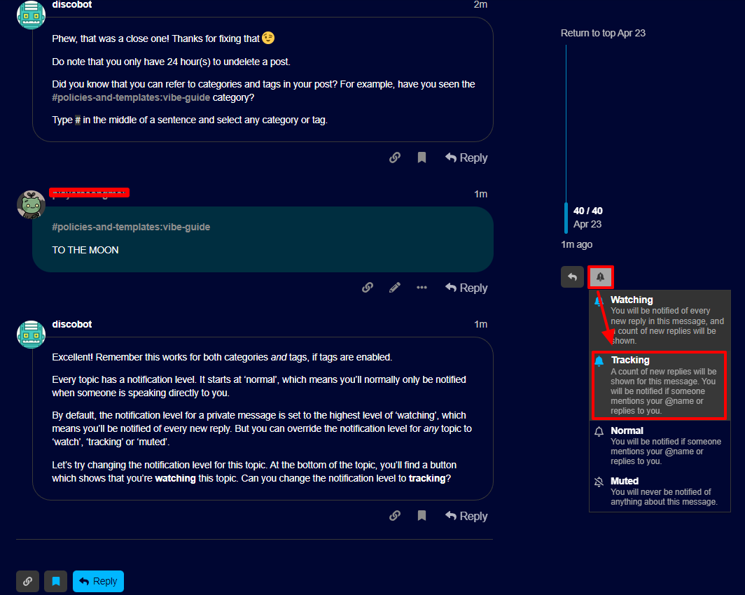 9. dicobot 의 추가 답변에 Reply 클릭 → 아무 단어 입력 후 드래그해서 CTRL+B (굵게 표시)