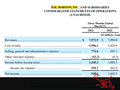 미국 최대 건설사인 DR Horton은 수익이 35% 감소했습니다.
