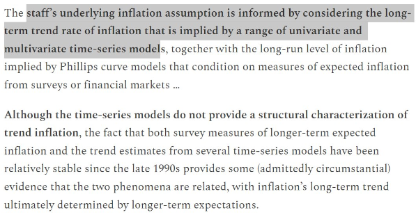 이에 따라 이사회 직원들은 대침체 이후의 저물가 역학을 설명하기 위해 일련의 통계 모델을 사용했습니다. 이는 데이터를 구조적 모델에 억지로 끼워 맞추기보다는 '데이터가 말하게 두자'는 정신에 입각한 것입니다. 그리고 그 추세는 느리게 움직이고 있습니다.