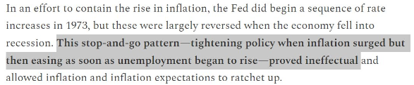 역사를 알아야 합니다. 1970~78년 연준 의장이었던 아서 번스는 주류 경제학계에서 역사상 최악의 의장으로 널리 알려져 있습니다. 파월 의장은 번스와 같은 전철을 밟고 싶지 않으며, 이를 피하는 확실한 방법은 번스의 실수를 피하는 것입니다.