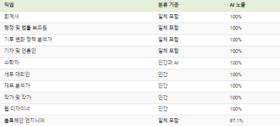 AI로 인한 업무 중단의 위험이 가장 큰 직업과 가장 적은 직업