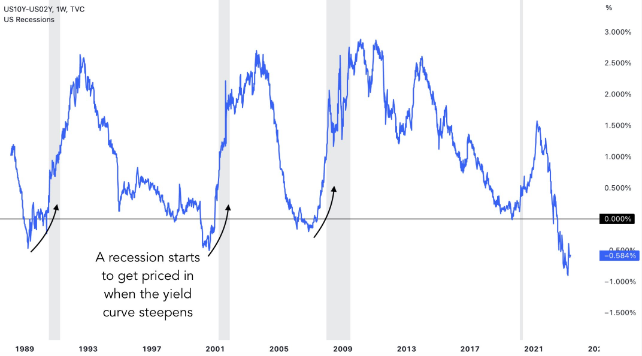 최근 은행권 붕괴 이후, 채권 시장이 경기 침체를 예상하면서 수익률 곡선이 가파르게 상승하기 시작했습니다.