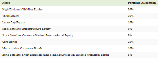 위성 노출을 제외한 이 배분은 과거 모델링에 따르면 1973년부터 2022년까지 가장 높은 위험 조정 수익률을 달성했습니다. 위성은 적극적으로 관리되는 포트폴리오의 비핵심 부분이며 현재의 거시경제 환경에 맞게 투자자 선호도를 조정하는 데 사용할 수 있습니다.