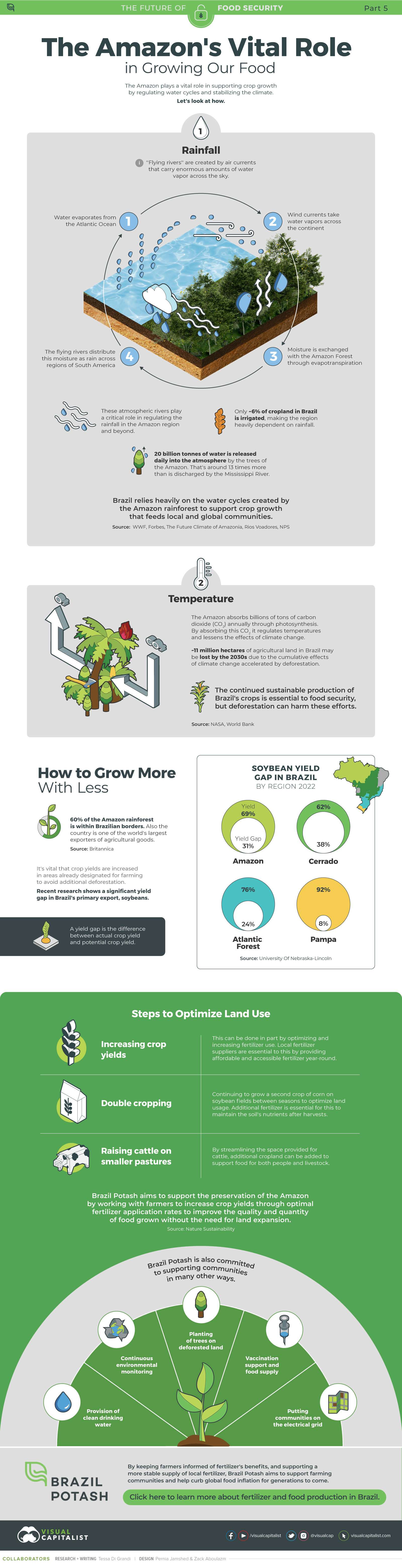 이 인포그래픽에서는 후원사인 브라질 포타시가 아마존이 강우량과 온도를 조절하는 방법과 작물 수확량을 최적화할 수 있는 방법을 살펴봅니다. 자세히 살펴보겠습니다.
