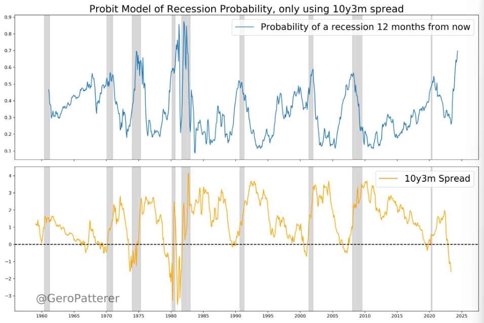 10y3m도 3.5% 반전하지 않는 한 이 모델은 80년대만큼 높은 확률을 보여줄 수 없습니다.
