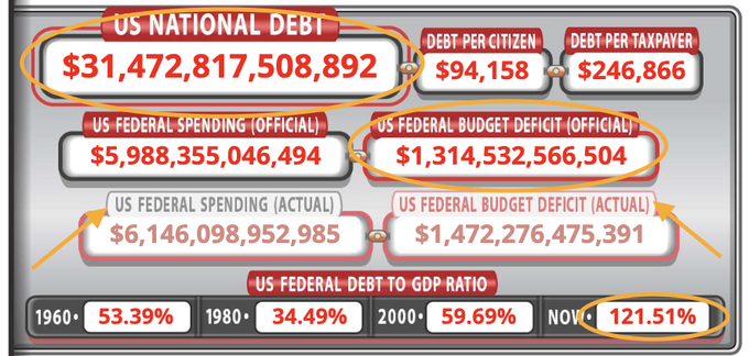 이는 국민 1인당 약 9만 4천 달러, 납세자 1인당 약 24만 7천 달러의 빚을 지고 있는 셈입니다.