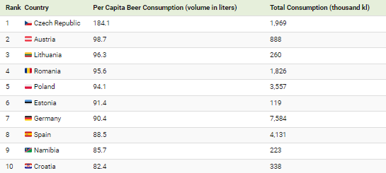 그렇다면 맥주를 가장 많이 마시는 국가는 어디일까요?