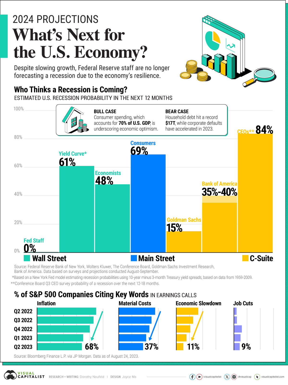 자료 출처: Visual Capitalist, "Will the U.S. Get Hit With a Recession in 2024?"
