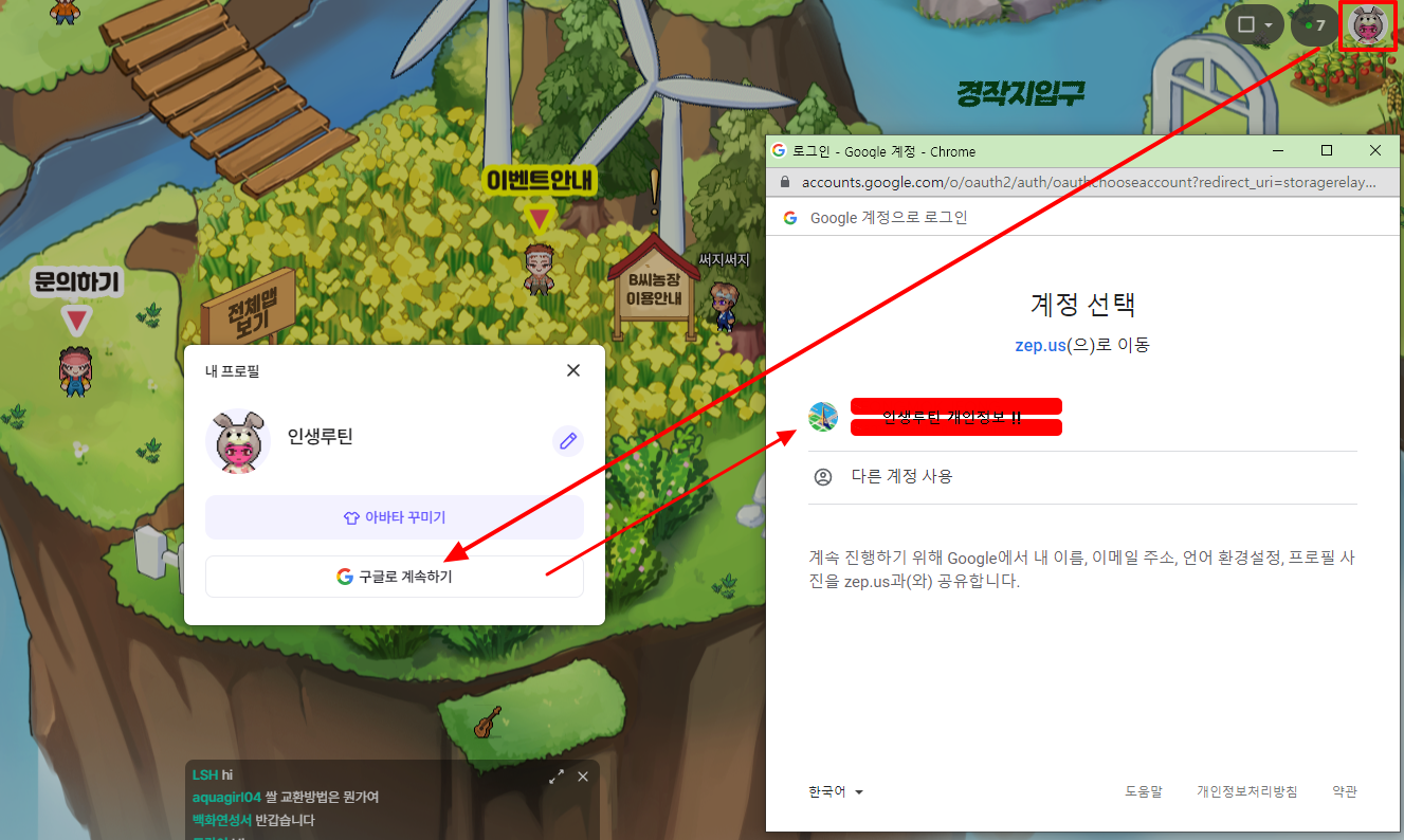 2. 구글 계정 연동하기 (구글 계정을 연동해주셔야 쌀 지급이 가능합니다.)