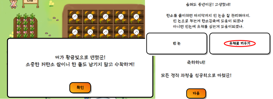 10-1. 마지막 퀴즈 유채꽃 키우기를 누르면 탄소크레딧을 얻고, 미션 끝 !!