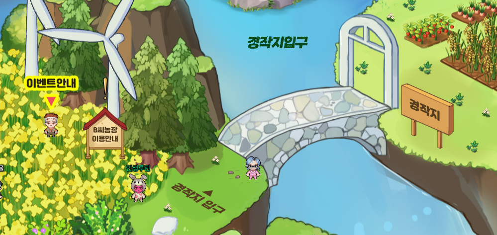 6. 아래쪽 논으로 내려가서 F 버튼을 눌러서 퀴즈를 풀어주세요