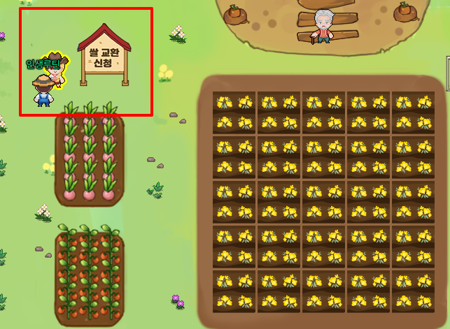 11. 마지막으로 쌀 교환 신청으로 가서 대화걸고 퀴즈 3문제 풀기 (정답 : X X O )