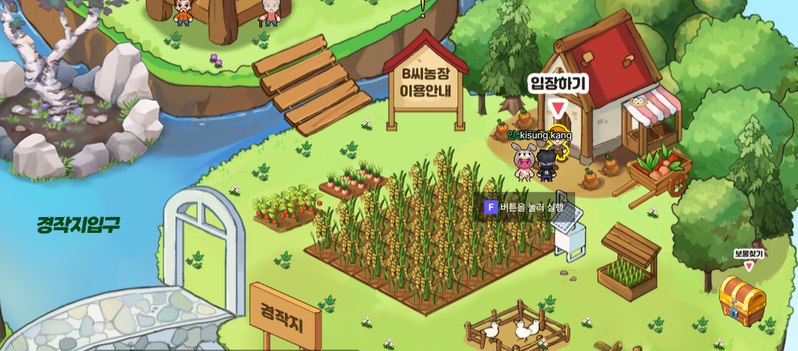 6. 아래쪽 논으로 내려가서 F 버튼을 눌러서 퀴즈를 풀어주세요
