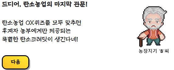 10-1. 마지막 퀴즈 유채꽃 키우기를 누르면 탄소크레딧을 얻고, 미션 끝 !!