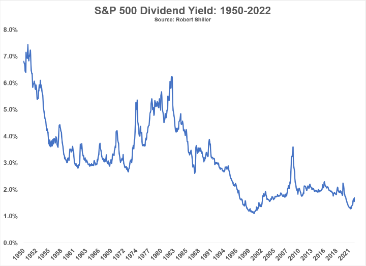 오늘날의 배당수익률은 과거보다 훨씬 낮은 것이 사실입니다.