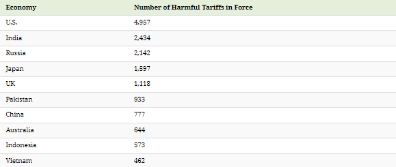자료 출처: Visual Capitalist, "Ranked: Harmful Tariffs by Economy"