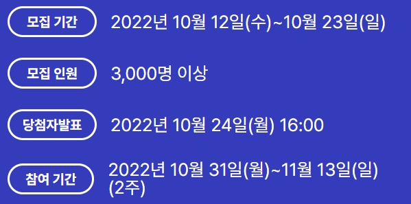 - 신청조건 : 수도권 지역(서울, 경기, 인천)에 사는 성인