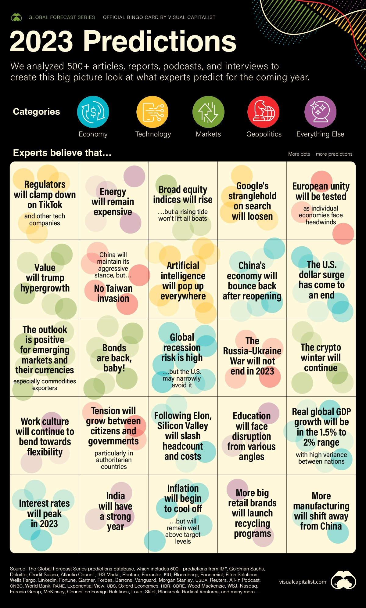 자료 출처: Visual Capitalist, "Prediction Consensus: What the Experts See Coming in 2023"
