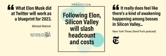 경기 침체기에는 기업이 진로를 수정하려는 유혹을 느끼며 종종 필요합니다. 스타트업과 투자 생태계 전체가 초고성장에서 가치 중심적 사고방식으로 전환될 수 있다는 예측도 있었는데, 이는 2023년에 고려해야 할 주제 중 하나입니다.