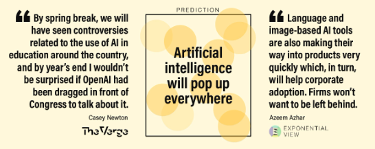전문가들은 AI가 지난 몇 년보다 2023년에 훨씬 더 가시적이고 가시적인 방식으로 사람들의 삶에 영향을 미칠 것이라고 예측합니다.