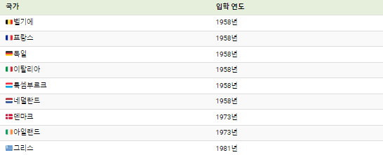다음은 EU의 27개 회원국 목록과 그들이 가입한 연도입니다.
