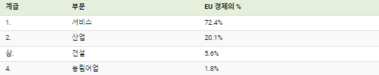 EU 경제는 2020년 경제에 추가된 부가가치의 70% 이상 을 차지하는 서비스 부문에 크게 의존하고 있습니다.