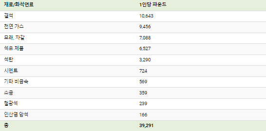 매년 39,000파운드(17,700kg) 이상의 광물과 화석 연료가 필요합니다.