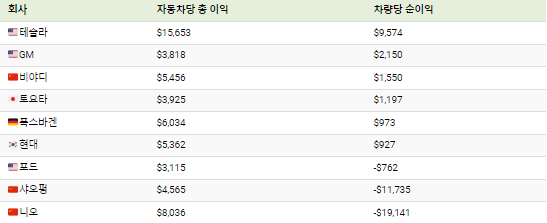 Tesla의 타의 추종을 불허하는 이익 마진